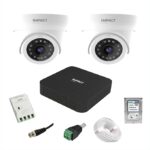 - CCTV Kit consists of 2 Dome Wired Camera, 1TB Hard disk, Power Supply, Cable Roll, BNC Connectors & DC Pin.