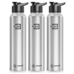 PEXPO Water Bottle 1 ltr Go24 Stainless Steel Sports/Fridge Bottle with Sipper Cap (Pack of 3)| Single Wall | For Home, Office, Gym, Travelling | Lightweight | Craft Pro 950ml | Silver