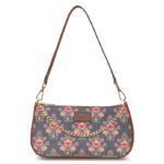 ZOUK Floral Printed Women’s Handcrafted Vegan Leather Dark Blue Casual Mini Shoulder Bag