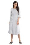 Aurelia Women’s Rayon Blue Round Neck Yarn-Dyed Dress Knee-Length