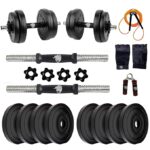 BULLAR Adjustable Dumbbells Set 8 Kg to 20 Kg with Pair of Dumbbell Rods and PVC Weight Plates with Gym Accessories (20 kg)
