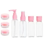 - ❤ COMPLETE TRAVEL SOLUTION: This Set Includes 7 Essential Containers – 1 Pump Bottle (For Lotions or Liquid Soap), 1 Spray Bottle (For Perfumes or Facial Mists), 2 Cap Bottles (For Shampoo, Conditioner, or Other Liquids), 3 Cream Boxes (For Creams, Serums, or Gels). All Are Neatly Packed in a Convenient Storage Pouch