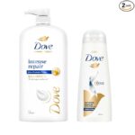Dove Intense Repair Shampoo 1 Ltr & Dove Intense Repair Conditioner 335 ml, (Combo Pack) | Enriched With Keratin Actives to Smoothen Dry and Frizzy Hair – Deep Conditions Damaged Hair for Men & Women