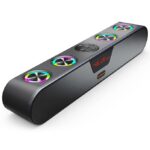 - [RGB LIGHTS]: Amp up the party with these flashy RGB lights. The vibrant lighting improves both the music and game dynamics experiences. The control button on the sound bar allows you to turn on and off the LED light. Suitable for your monitor’s games, movies, and music.