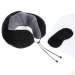 Amazon Basics Premium Travel Neck Pillow + Sleeping Eye Mask Combo with a Portable Bag| Comfortable| Soft Velvet Fabric I Black & Grey