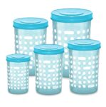 MILTON Storex Set of 5 Plastic Storage Jars & Containers (500ml, 750ml,1L, 1.5L & 2L) Blue, BPA Free, Air Tight Kitchen Organizer for Spices, Atta, Grains, Dishwasher Safe and Stackable