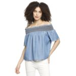 Pepe Jeans Women’s Round Neck Textured Off Shoulder Regular Fit Top