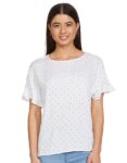 Marks & Spencer Womens Polka Dot Viscose Round Neck Regular Fit Short Sleeve Top