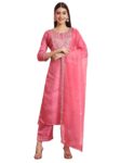 VredeVogel Women’s Silk Blend Embroidered Kurta with Pant & Dupatta Set