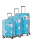 Teakwood World Large Set of 3 Cabin Size Trolley Bag Polycarbonate 360 Degree 8 Wheels Luggage Bag with TSA Lock, Adjustable Handle Trolley Bags for Travel, Suitcase for Travel | Blue