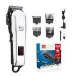 KIKI NEW GAIN NG-777 Salon Series Professional Cordless Hair Clipper Digital Display 6000 RPM Powerful magnet Motor High Carbon steel 4 Guide Comb Taper Lever Adjustment Runtime: 240 min, Silver