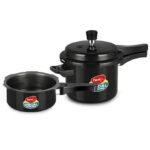 Pigeon by Stovekraft Induction Base Outer Lid Hard Anodised Aluminium Pressure Cooker Combo, 2 L and 3 L (Black)