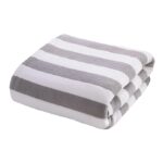 MAXOSHINE Microfiber Towels for Bath-Stripes Bath Towel for Men and Women-Soft Coral Fleece Towel with Hook Quick Dry Super Absorbent-70 x 140 cm (Grey, Pack of 1)
