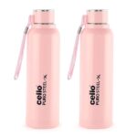 CELLO Puro Steel-X Benz 900 | Water Bottle with Inner Steel | Insulated Water Bottle | Set of 2 | 730 ml, Pink