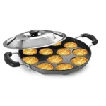 PANCA Appam Pan with Lid Appam Maker 12 Cavity Appam Chatty Appam Pan Aluminium, Appam Kadai Non Stick with Lid, Grey