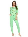 Clovia Women’s Cotton Cactus Print Top & Chic Basic Pyjama Set In Green