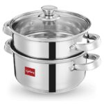 Lifelong 2-Tier Steamer/Momo/Modak Maker with Glass Lid & Riveted Handles | 20 cm Stainless Steel Multi-Purpose Cooking Steamer (LLMOM01)