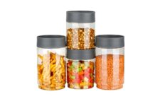 Clazkit Eazystack plastic Storage Jar Air-Tight BPA Free Combo Containers Set Kitchen Organizer & Kitchen Storage Set of 4 Pantry Organization Multipurpose Jar 1000 ML,1500 ml – Grey