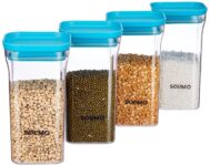 Amazon Brand – Solimo Plastic Storage Jar and Container Set I Air Tight & BPA Free Containers for Kitchen Storage Set I Grocery Kitchen Container Set I Multipurpose Jar, 1100 Ml Each, Set 4, Blue