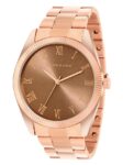 - Dial Color: Brown Case Shape: Round Band Color:Rose Gold Strap Material:Metal