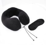Amazon Basics Premium Travel Neck Pillow + Sleeping Eye Mask Combo l Comfortable | Soft Velvet Fabric I Black